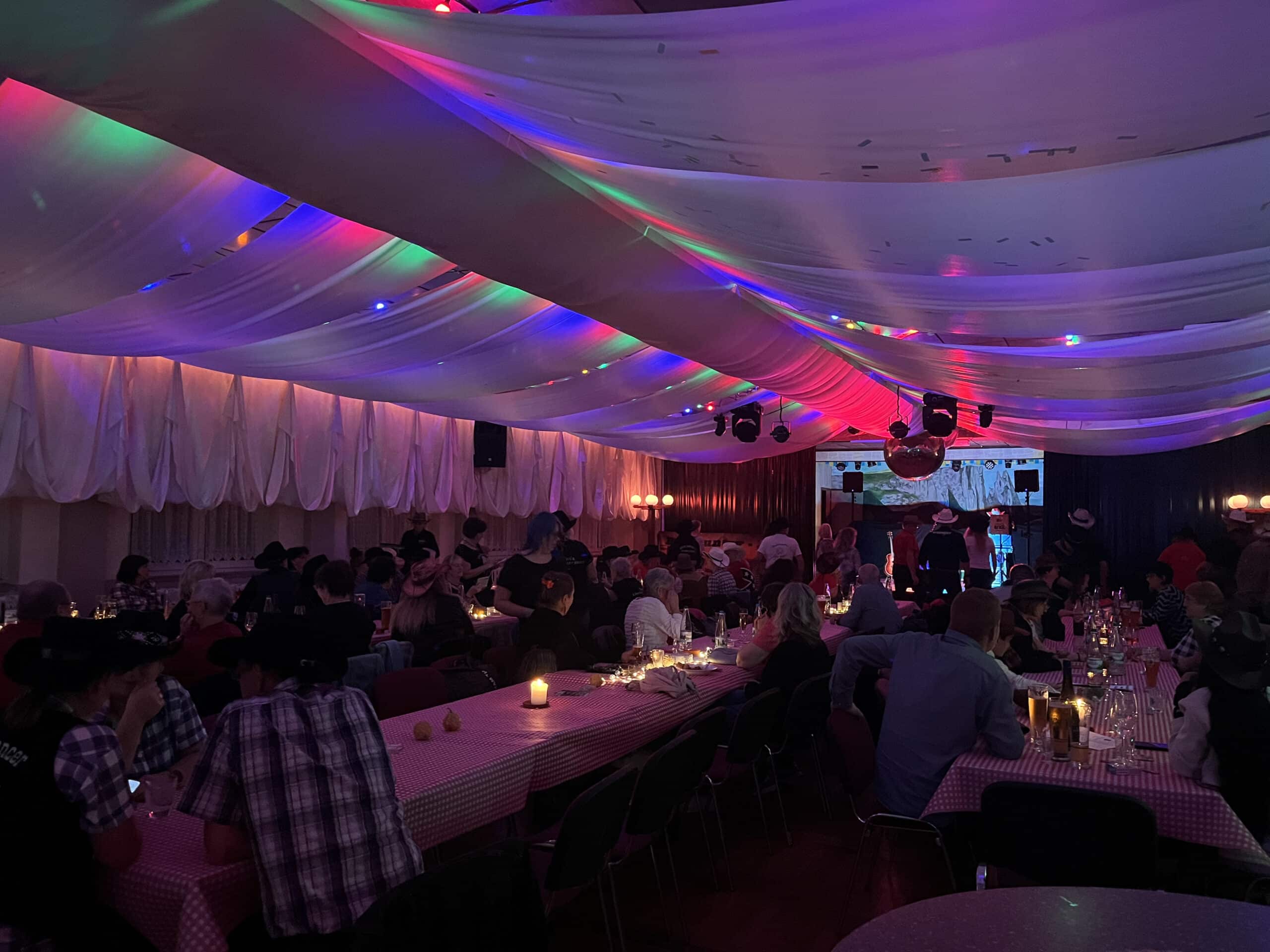 Einmal im Jahr öffnen wir die Türen zu unserem traditionellen Country-Abend im großen Festsaal von Mary’s. Mit stimmungsvoller Beleuchtung, Discokugel und viel Platz auf der Tanzfläche entsteht die richtige Atmosphäre für einen Abend voller Musik und Bewegung.